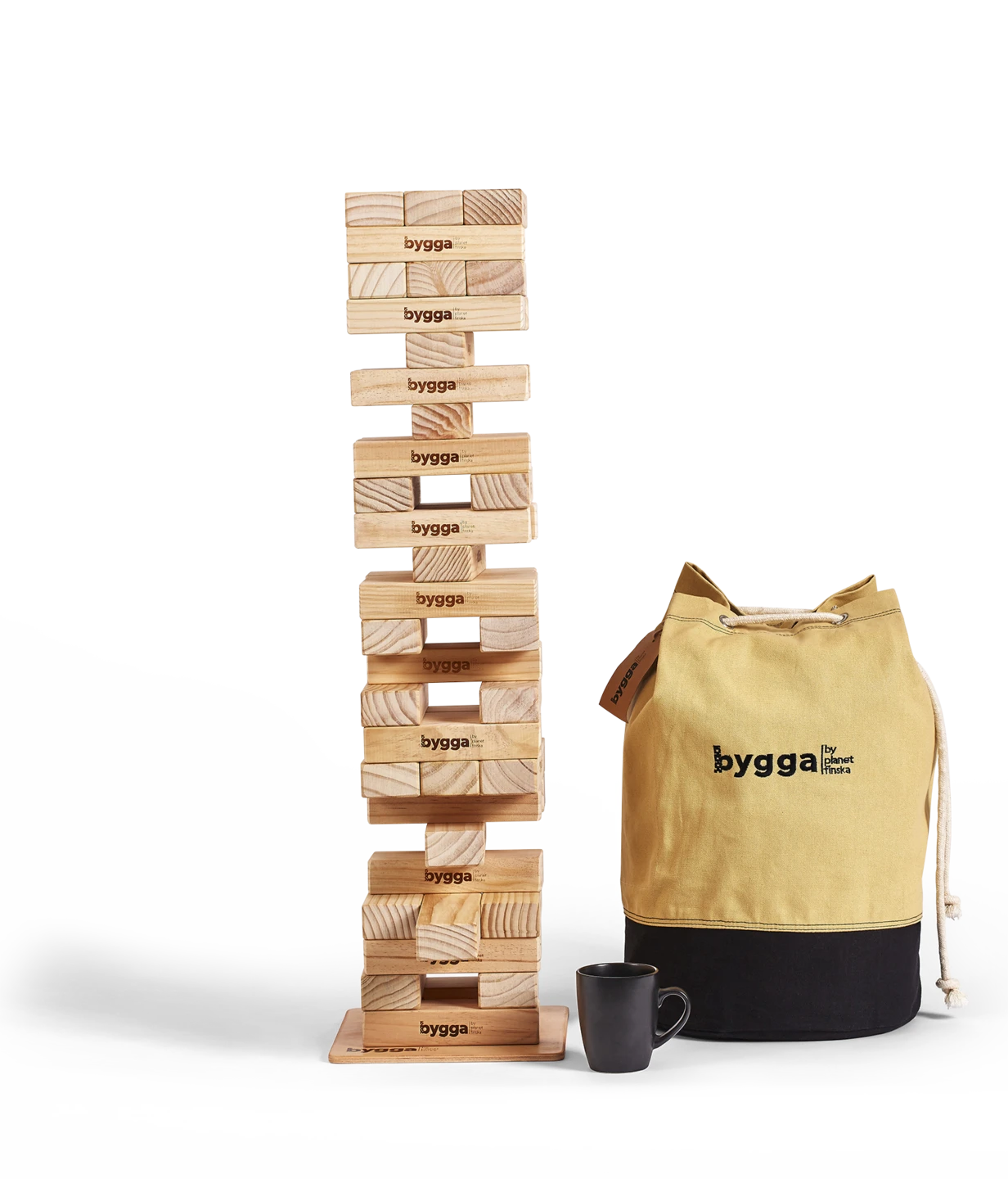Meet Bygga, our new giant outdoor sized tumble tower or jenga game. Bygga, which is Swedish for “build”, comes with 54 jumbo sized timber blocks immaculately crafted and each with a fine finish.