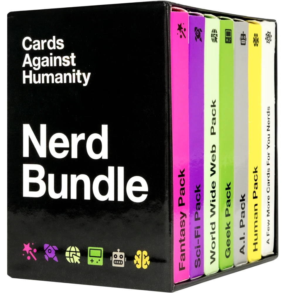 These days, everyone considers themselves a nerd. That is why the Nerd Bundle is a great marketing idea. This pack contains 192 cards previously released from the Fantasy, Science, Geek, Sci-Fi, World Wide Web, Human, and A.I. Packs, plus ten all-new cards that we desperately crammed in at the last second. This is an expansion pack, so you need to buy Cards Against Humanity first.