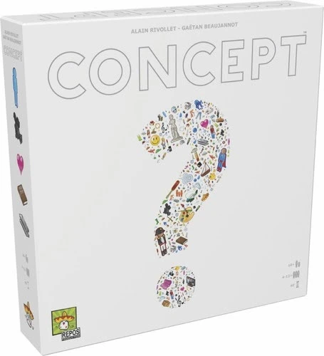In Concept, your goal is to guess words through the association of icons. A team of two players – neighbors at the table – choose a word or phrase that the other players need to guess. Acting together, this team places pieces judiciously on the available icons on the game board.