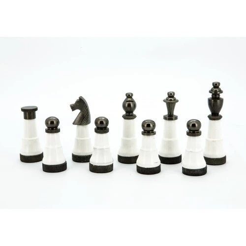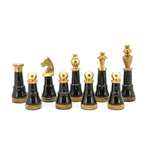 Dal Rossi Italy Chess Set Walnut Finish 20″ With Two Drawers, With Black and White with Gold and Gun Metal Tops and Bottoms Chessmen 110mm