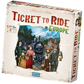 In Ticket to Ride: Europe, you collect cards of various types of train cars that you then use to claim railway routes in Europe. The longer the routes, the more points you earn! If you fulfill destination tickets — goal cards that connect distant cities — then you receive bonus points at the end of the game; fail to connect the cities on your tickets with rail routes, and you lose those points instead.