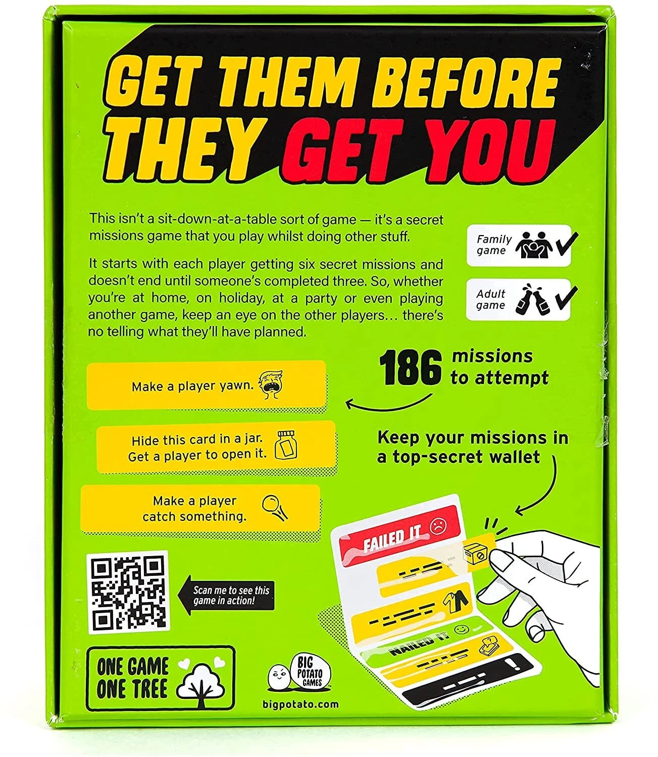 SIX SECRET MISSIONS: In this party game, each player starts with six missions to complete.