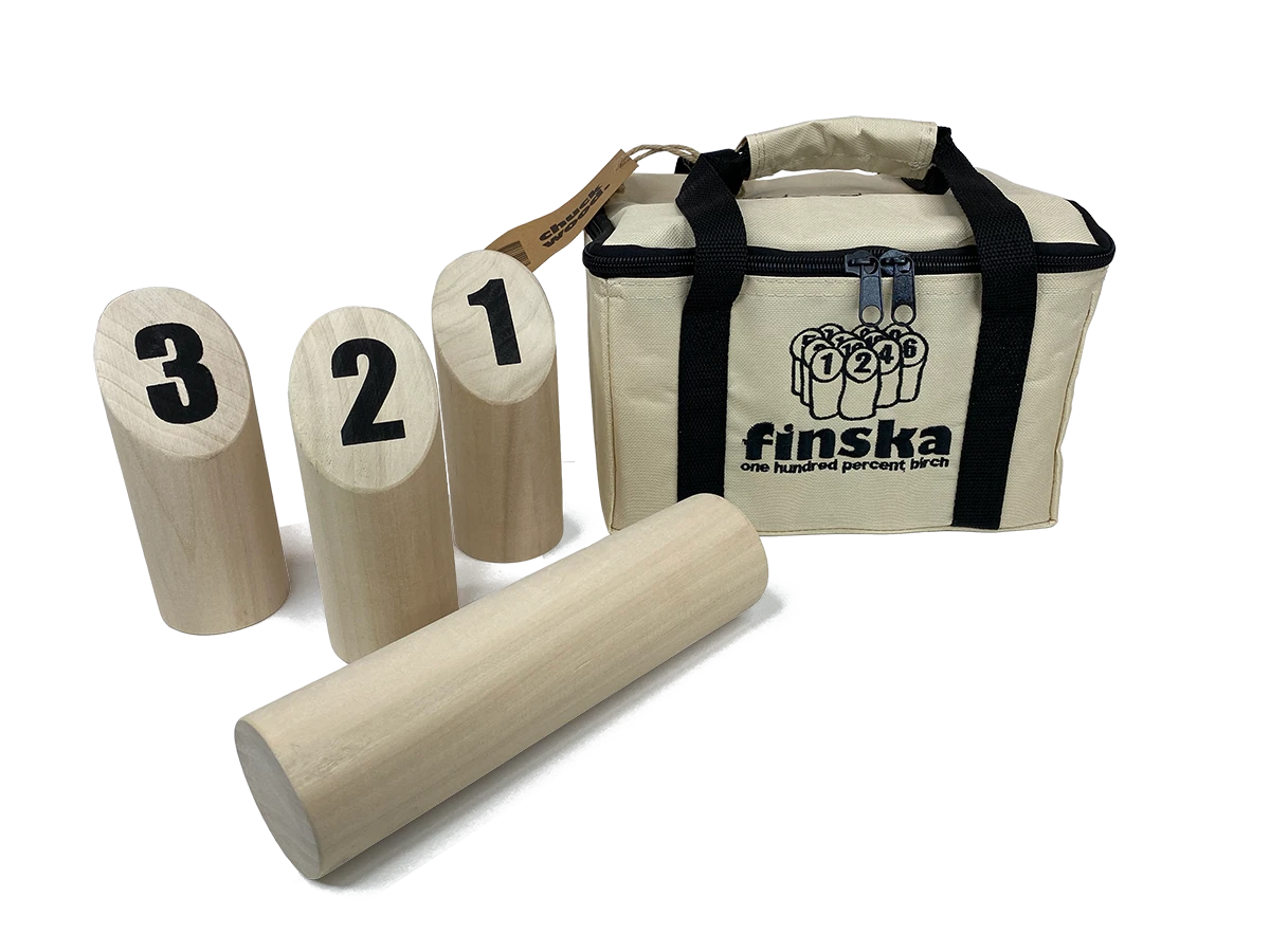 Original Finska is crafted from eco-friendly birch and comes with everything you need to become yet another Finska tragic! Includes durable zip up carry bag, 12 numbered pins, one finska throwing log and laminated rules and scorecard to protect against the elements.