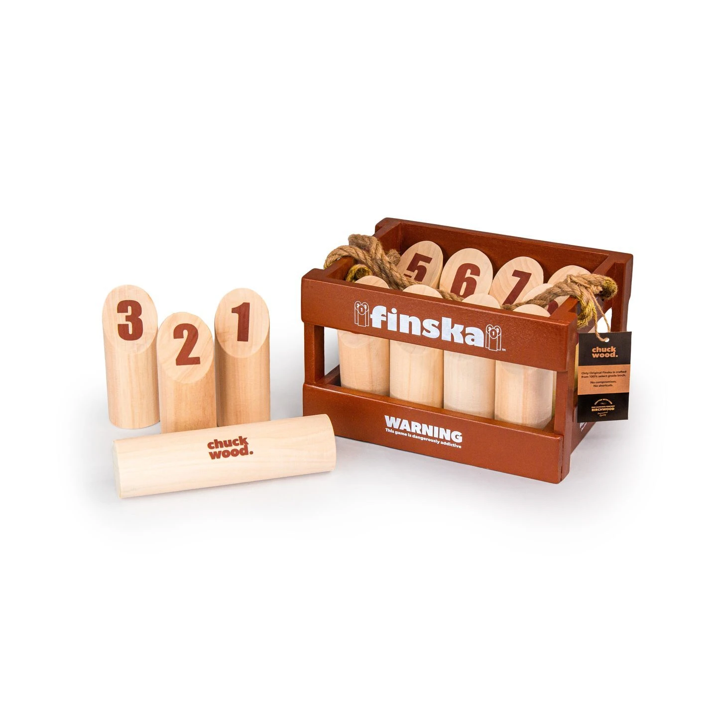 Each Finska Red set comes packaged in a handy painted hardwood carry crate and includes 12 numbered pins, Finska throwing pin (“the Finska”) and easy to understand rules and official finska score card. The laminated scorecard protects against the elements and can be re-used after a quick wipe clean. Finska is suitable for ages 7 to 107.