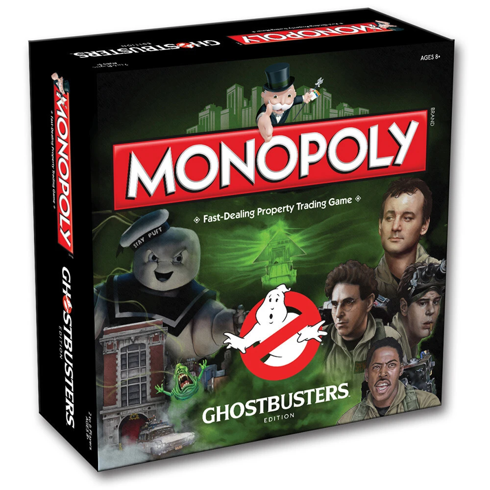 Travel the board subduing the vapours, entities and slimers at famous New York locations from the original Ghostbusters movie, including the library stacks, ballroom, and the entrance of Zuul! Improve your locations with custom sculpted Ghost Traps and Storage Units to hold the spooks at bay. No job is too big, no fee is too big in this custom edition of MONOPOLY!