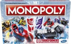 In this exciting twist on the Monopoly game, players enter the world of Transformers and imagine traveling between Earth and Cybertron as a heroic Autobot or evil Decepticon. Choose to play as Optimus Prime, Bumblebee, Grimlock, Megatron, Starscream, or Soundwave in a race to take control of energy-rich locations. Buy, sell, or swap properties, build up a supply of Energon cubes, and construct Energon bunkers.