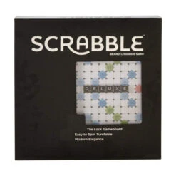 Every word counts when you’re playing this deluxe version of one of the world’s most popular word game. Featuring an elegant board in contemporary colours and chic black styling along with a built-in turntable and storage drawer, Scrabble Deluxe is an ideal combination of sleek looks and improved functionality. Like the classic version, this enhanced edition is for two to four players and the object is to compete for the highest score by forming interlocking words in crossword fashion on the Scrabble board. Tiles display letters with various score values. Earn higher scores by using the tiles in locations and combinations that make the most use of both the letter values and the premium squares. For example, triple-letter score, double-word score on the board earn greater points. Includes game board, rules guide, 100 letter tiles with sleek green pouch and four tile racks.