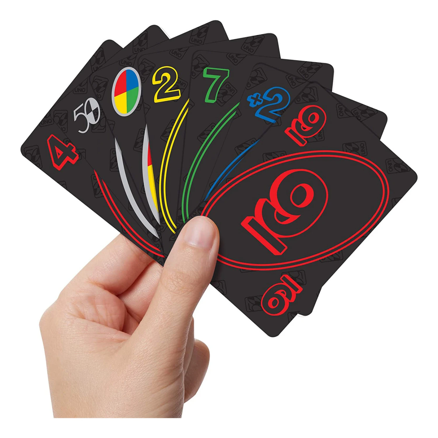 - The slick black cards have a deluxe look and feel but play just like the classic UNO game. The exclusive 50/50 card and commemorative gold coin are incorporated into the game with a special rule