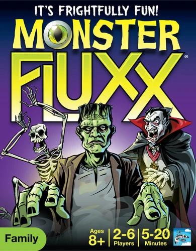 With Monster Fluxx, Looney Labs returns to the monster theme first explored in Zombie Fluxx, but now the zombies are joined by vampires, skeletons, an angry mob of villagers, and even Bigfoot — all in a simple version of Fluxx available only at Target stores in the U.S.