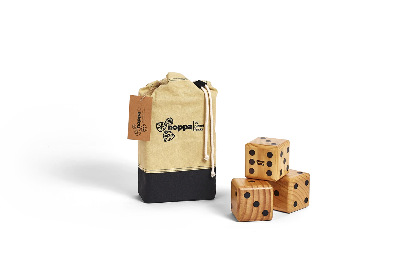 New for 2017, we are excited to launch Noppa, our sack of classic dice games that will provide entertainment for young and old at your next barbecue or picnic. Each set includes 6 beautifully crafted jumbo wooden yard dice, length of rope and a rule book that includes a variety of classic dice games including Yardzee, Push Your Luck, Snake in the Hole and Ship, Captain, Crew.